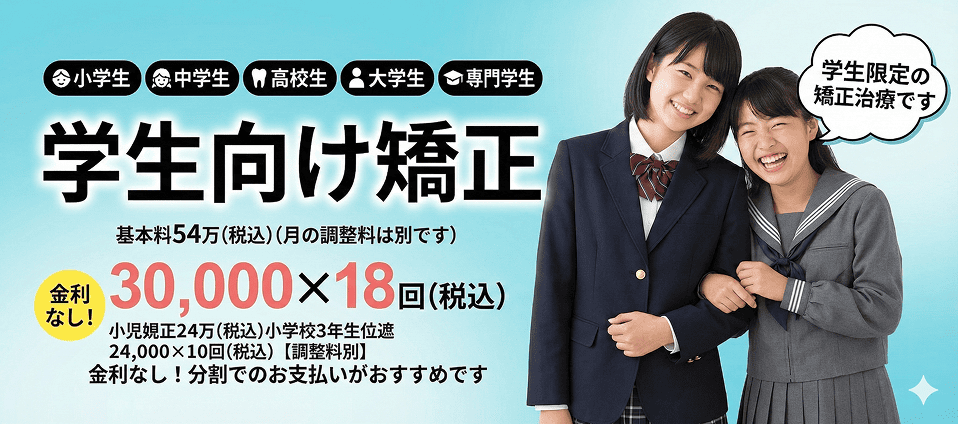 リテーナー・ミニスクリュー・便宜抜歯すべて込み