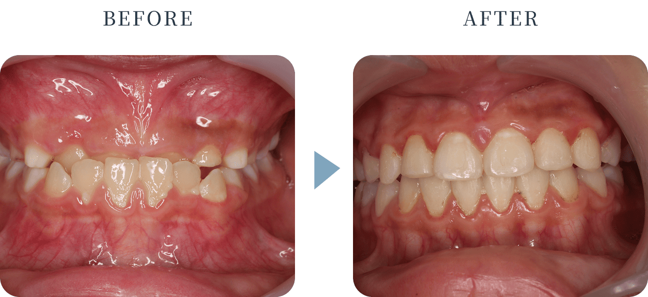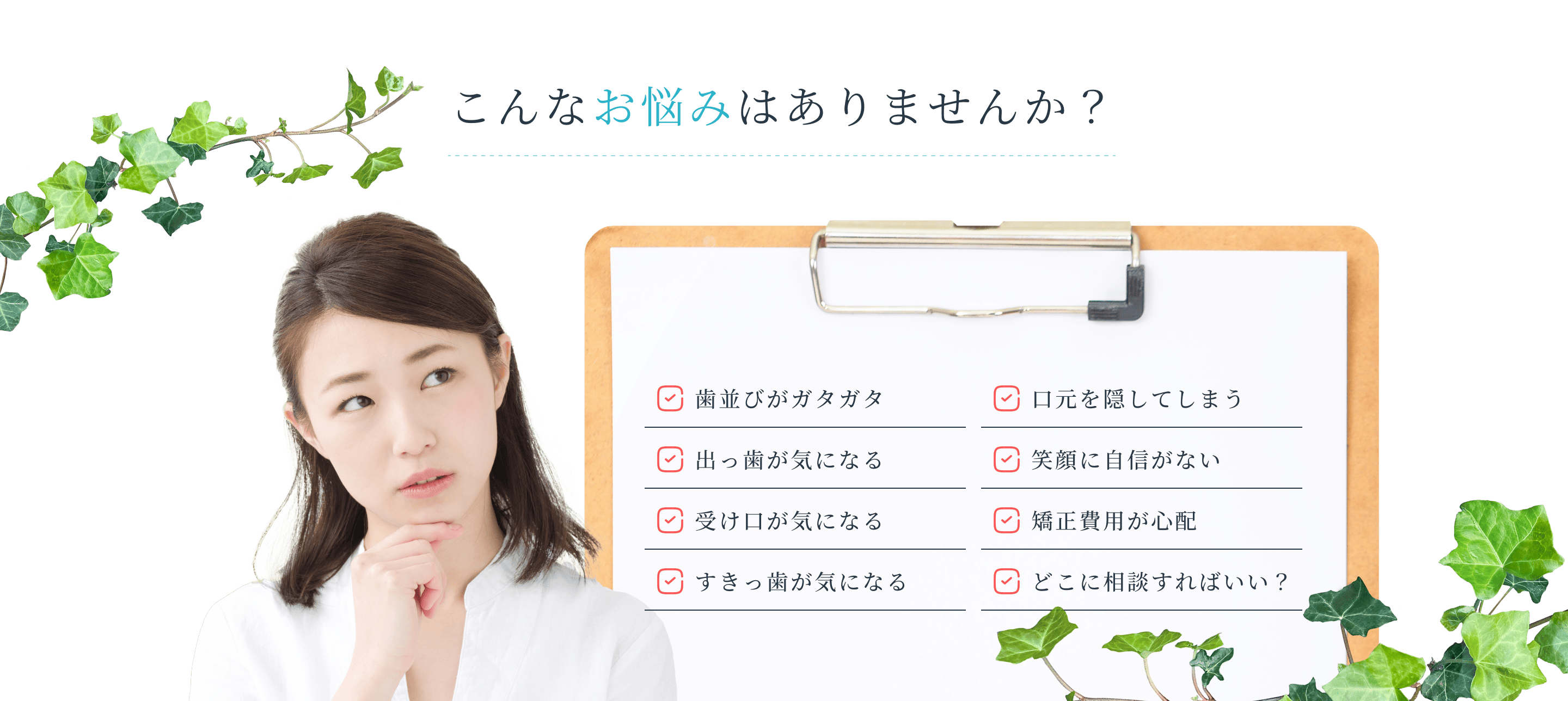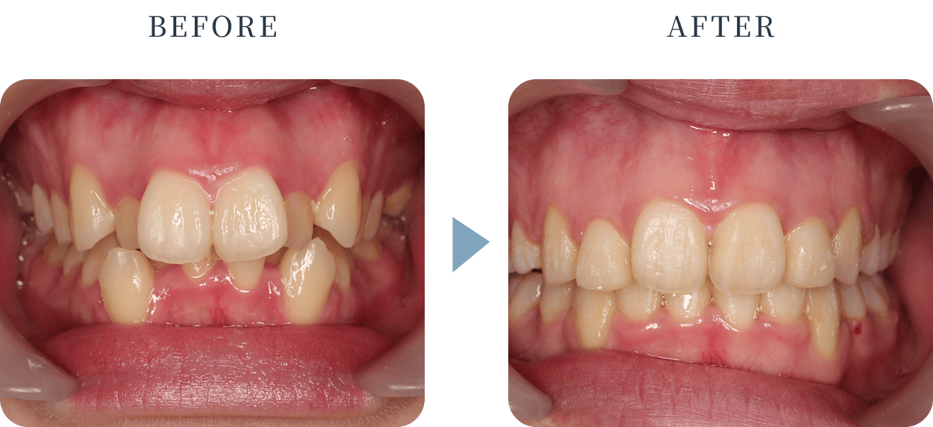 - 咬み込みが深く、前歯の位置や犬歯の向きが気になる